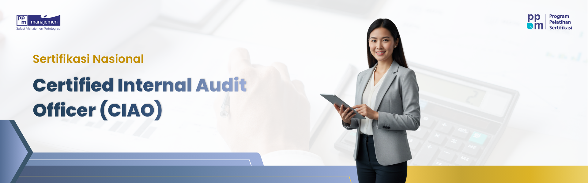 Certified Internal Audit Officer (CIAO) adalah sertifikasi kompetensi bagi profesional yang bertugas memastikan efektivitas pengendalian internal dan keberlanjutan operasional organisasi. Auditor internal dengan kualifikasi CIAO mampu memberikan penilaian independen dan objektif terhadap manajemen risiko, sistem kontrol, dan proses kepatuhan. Peran ini menjadi kunci untuk menjaga integritas operasional serta memastikan organisasi berjalan sesuai standar dan regulasi yang berlaku.