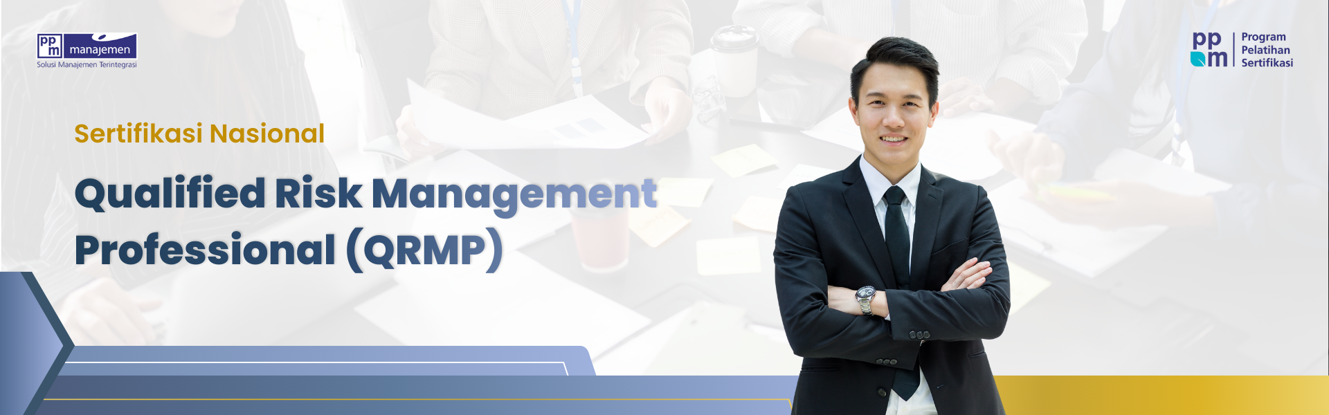 Qualified Risk Management Professional (QRMP) adalah sertifikasi nasional yang dirancang untuk membekali profesional dengan kompetensi manajemen risiko yang komprehensif dan berstandar internasional. Berbasis pada SNI ISO 31000, program ini memastikan peserta mampu merancang, menerapkan, dan mengevaluasi kerangka kerja risiko yang selaras dengan tujuan organisasi.
